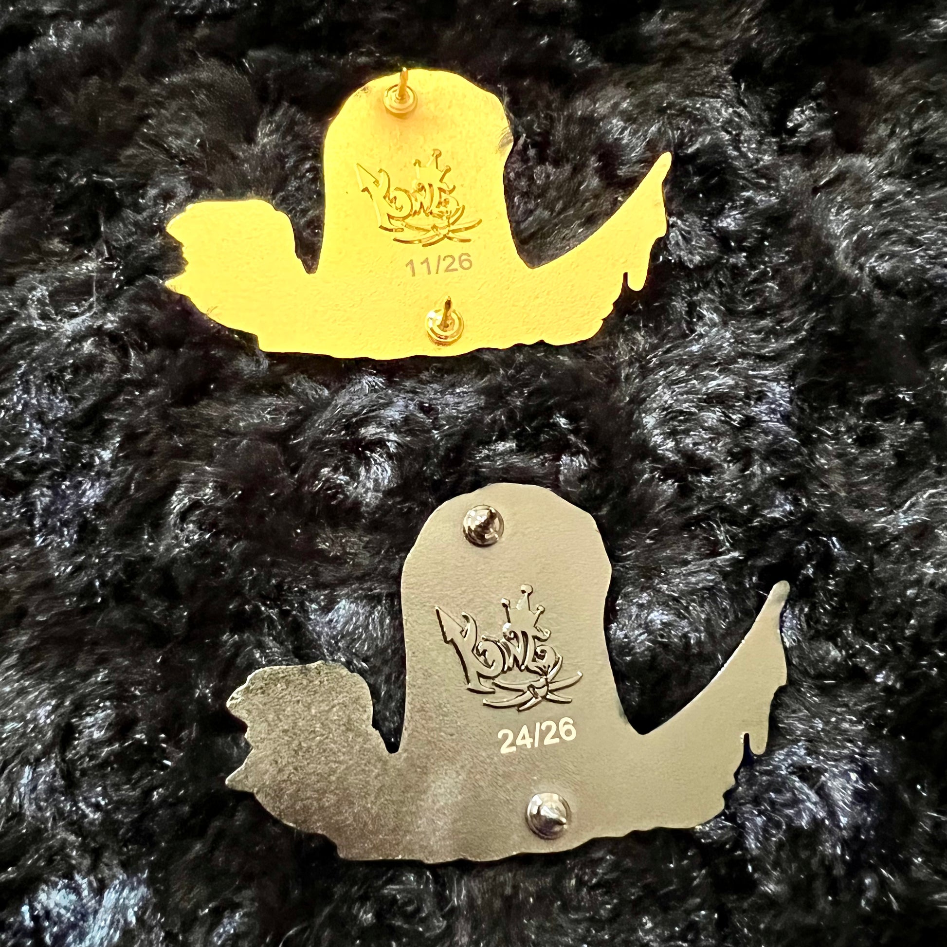 2.5” Wide x 1.5” Tall, 2mm Thick, Hard Enamel, 2 Posts, Back Stamped and Numbered