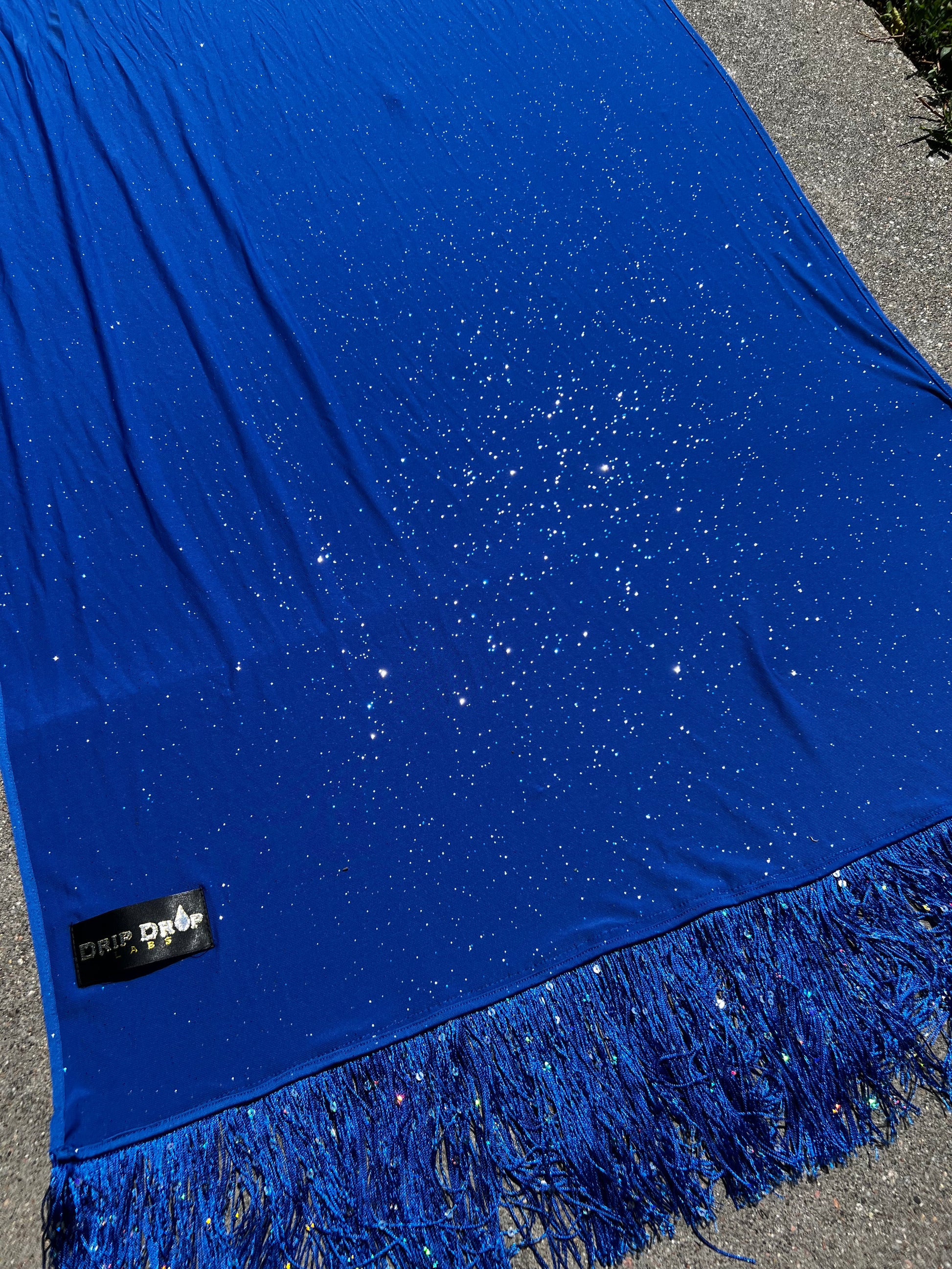 Immerse yourself in a shimmering galaxy with our Galactic Blue Pashmina. Its permanent holographic glitter reflects the colors around you, while its lightweight and bouncy fabric drapes effortlessly for a cooling and flowy feel. Perfect for festivals, this one-of-a-kind piece by Drip Drop Labs adds a touch of unique luxury to any outfit.