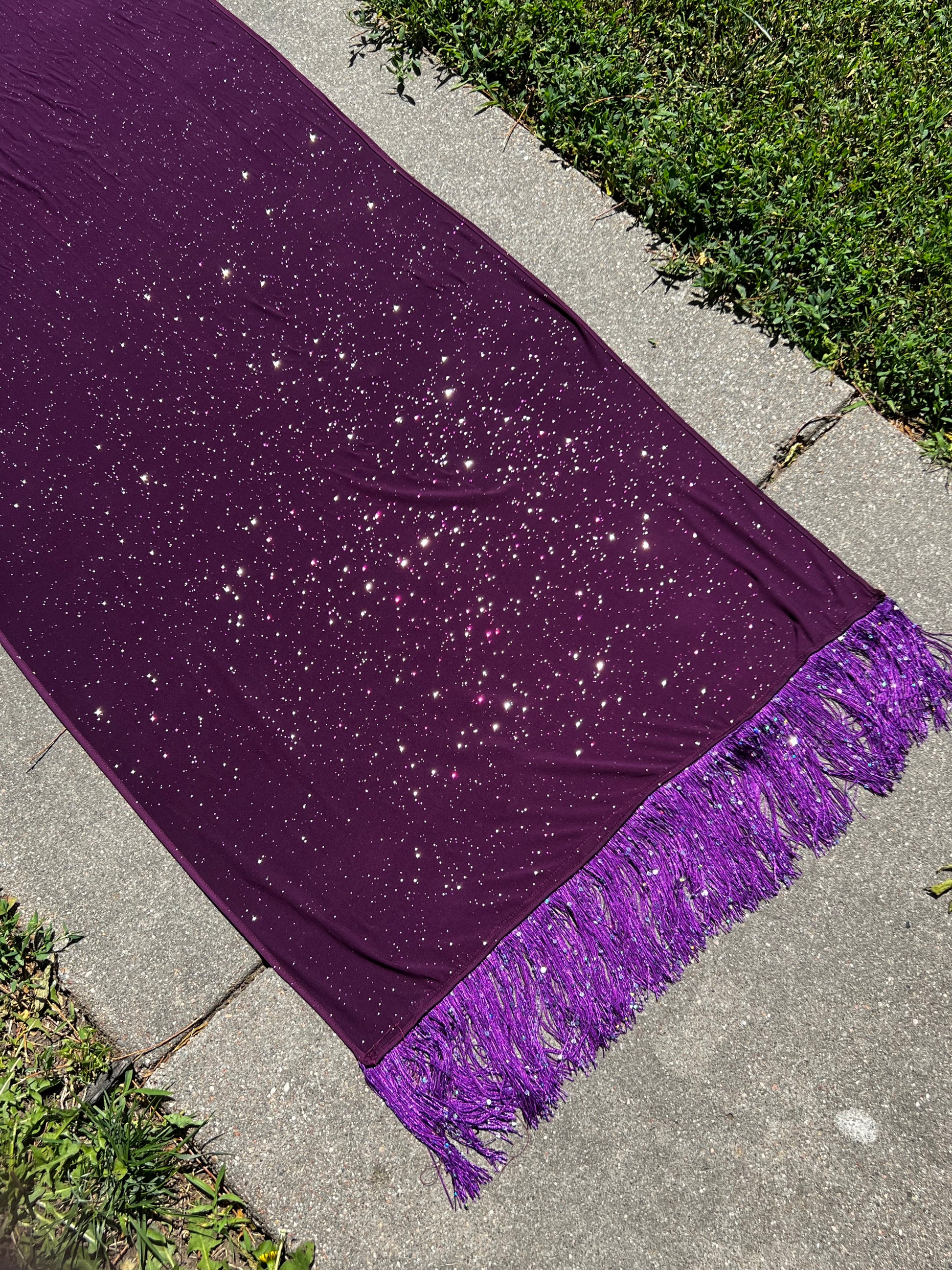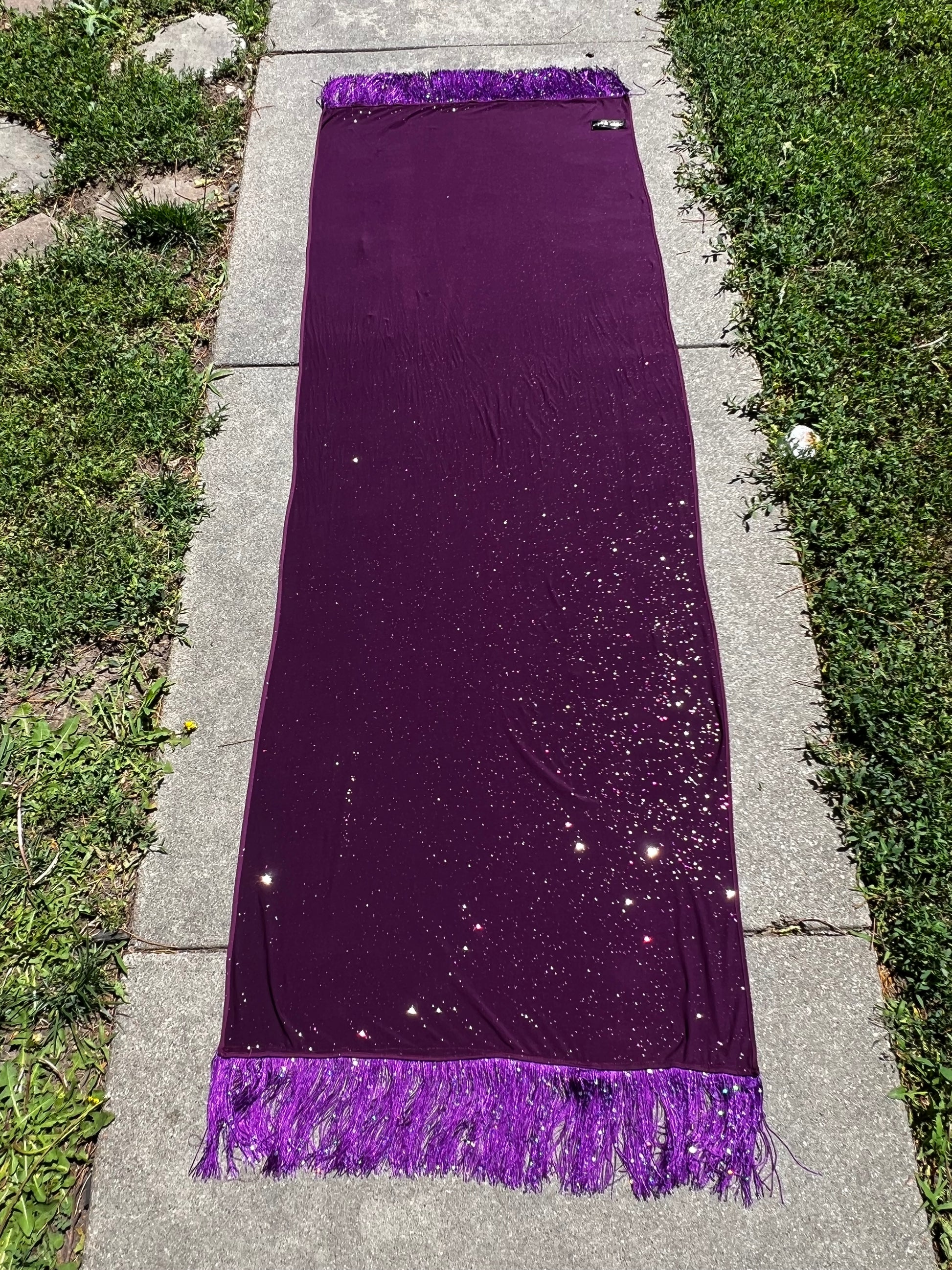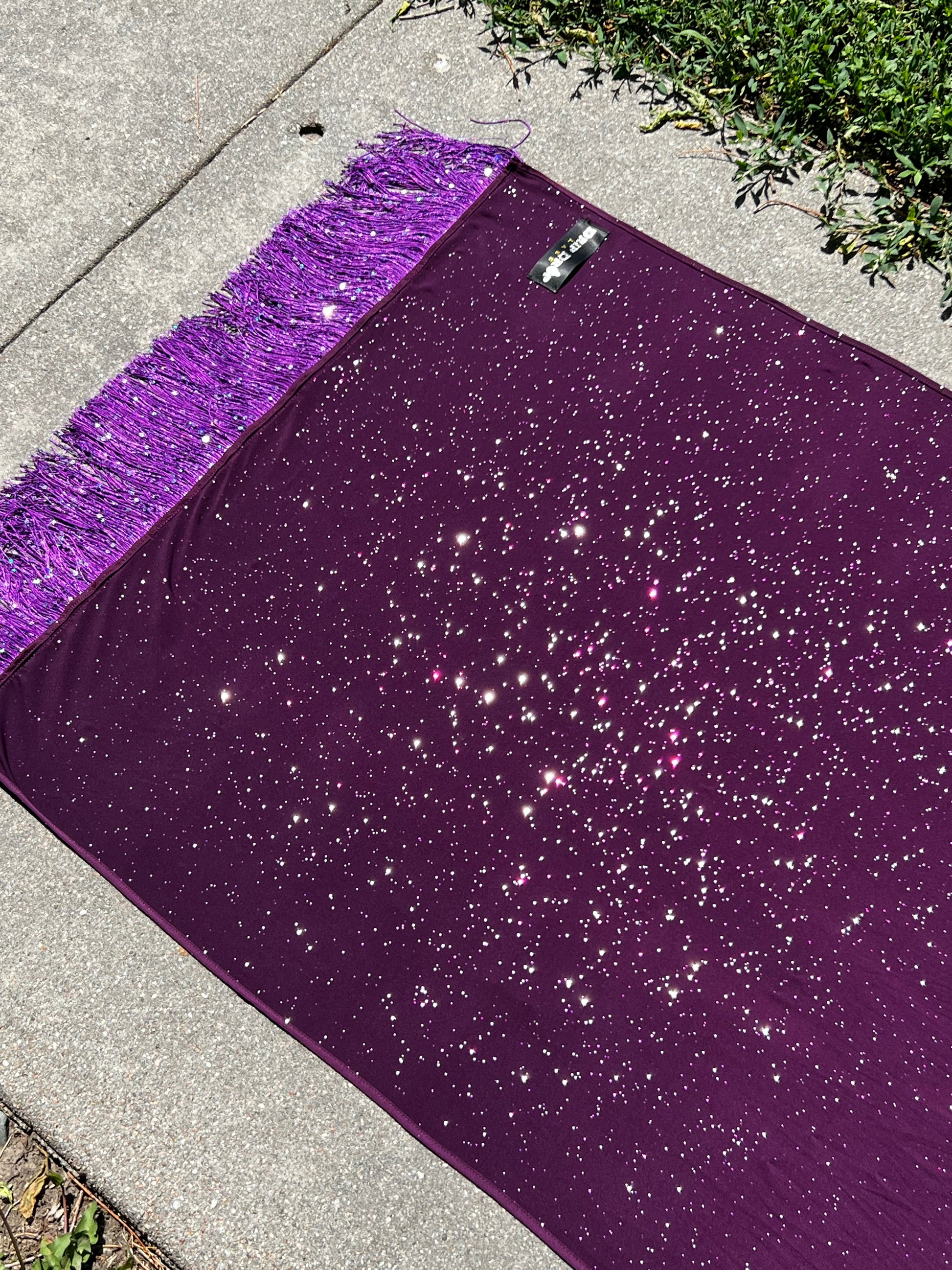 Immerse yourself in a shimmering galaxy with our Galactic Purple Pashmina. Its permanent holographic glitter reflects the colors around you, while its lightweight and bouncy fabric drapes effortlessly for a cooling and flowy feel. Perfect for festivals, this one-of-a-kind piece by Drip Drop Labs adds a touch of unique luxury to any outfit.
