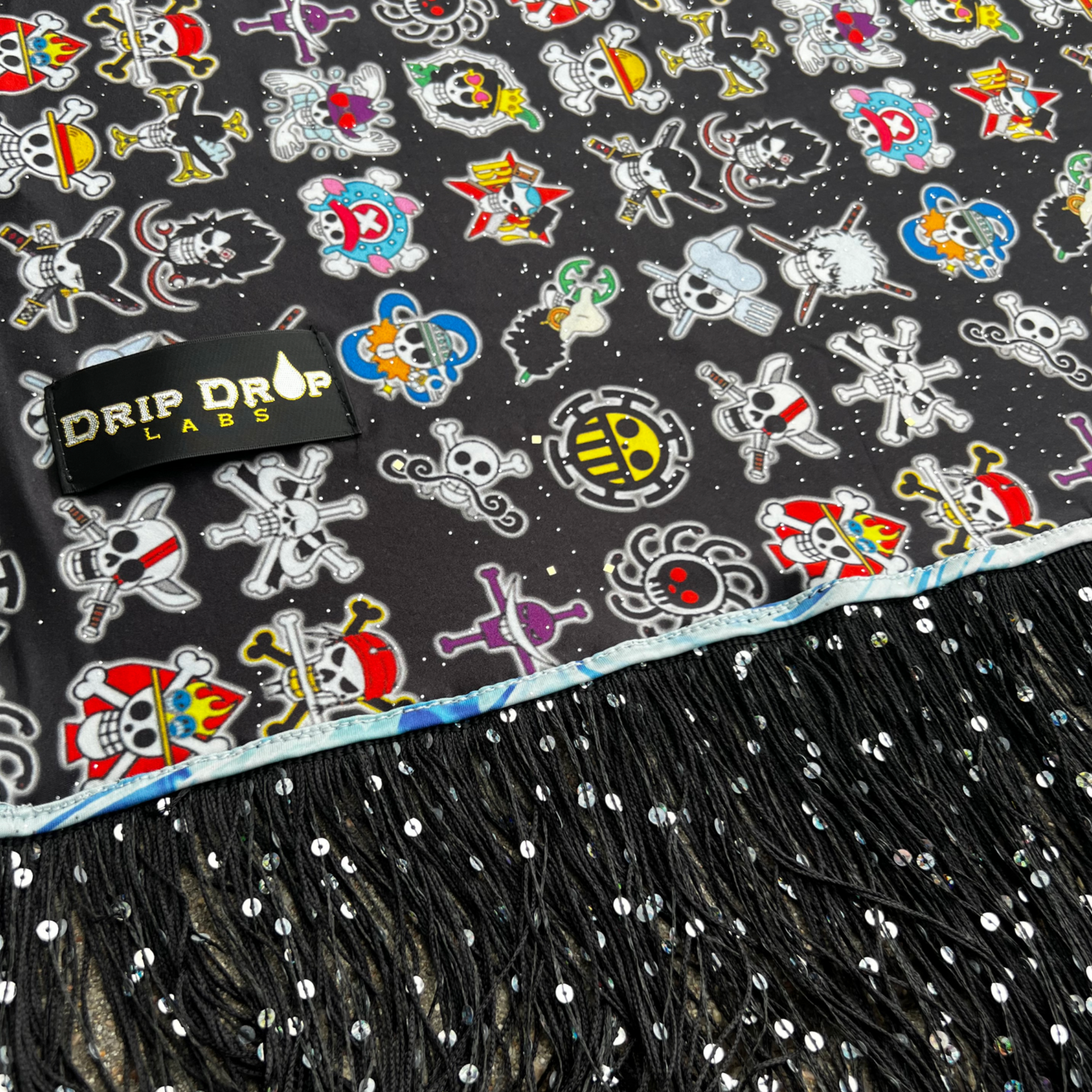 - 76 x 30” with 4” sequin tassels on either side