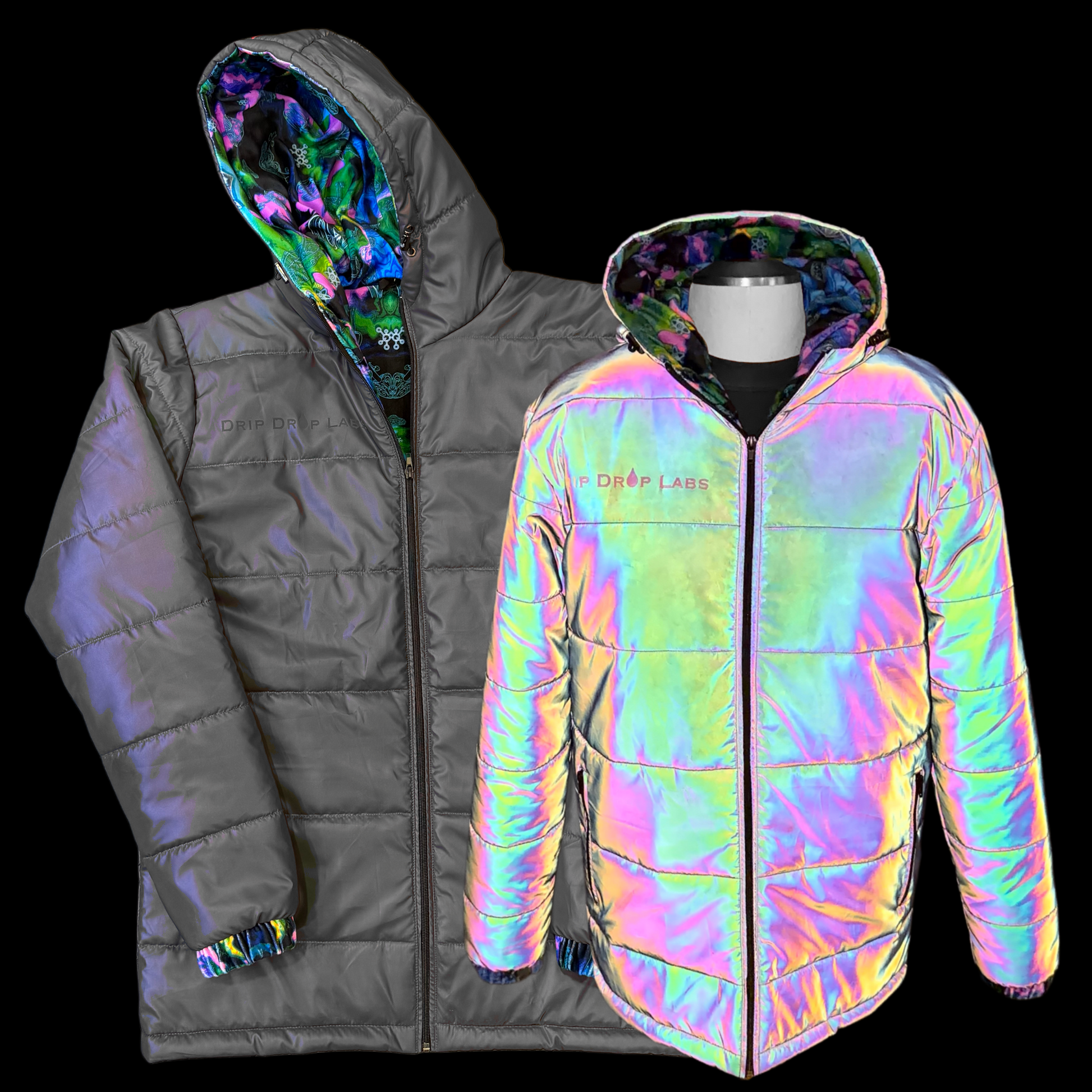 Holographic Dual Reflective Puffer Jacket - EDM Winter Coat