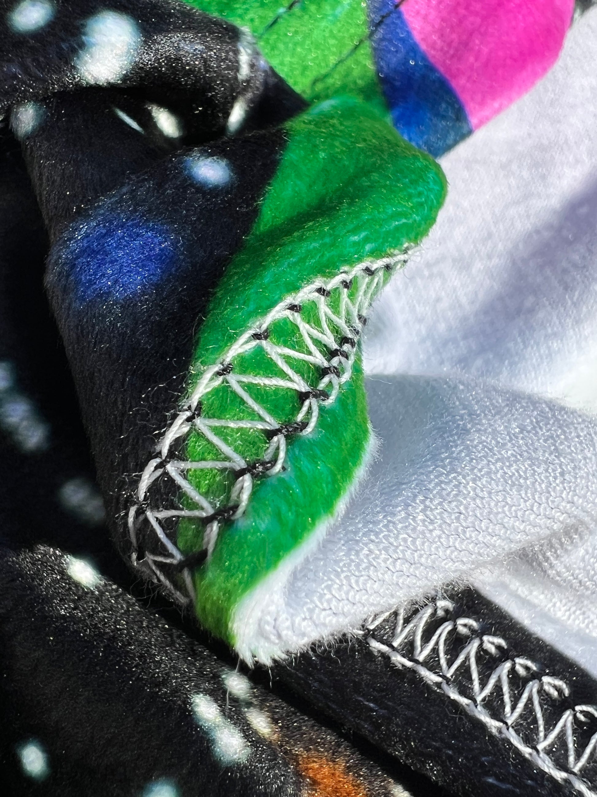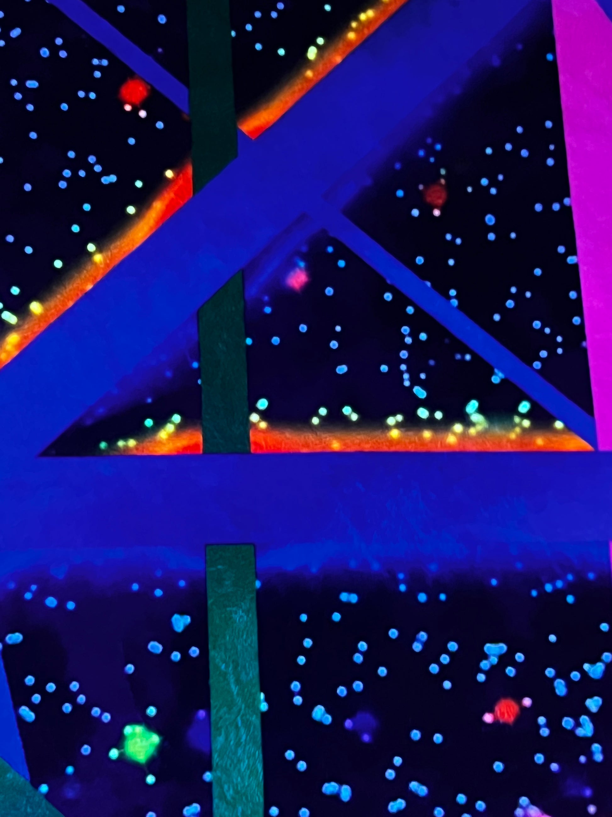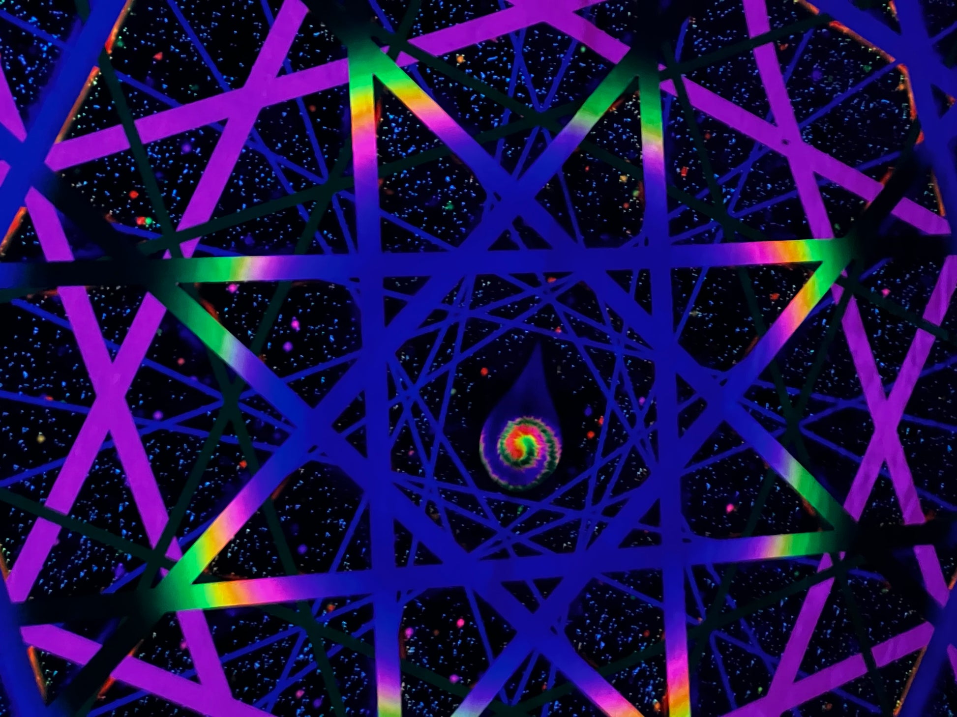 This black light reactive tapestry boasts a dazzling powerful glow and stunning daytime light reflections, thanks to our custom premium crushed velvet fabric. As an added bonus, this 60x80" tapestry also functions as a cozy blanket, perfect for chilly festival nights. Made with super soft fabric that leaves bunnies jealous, this limited edition piece from Drip Drop Labs is a true one-of-a-kind item, signed by the talented owner and artist behind our labs. Get ready to elevate your psychedelic space journey with style and comfort.